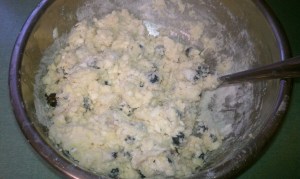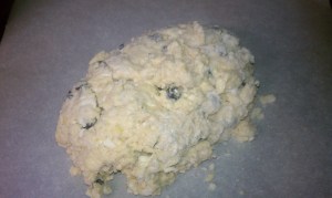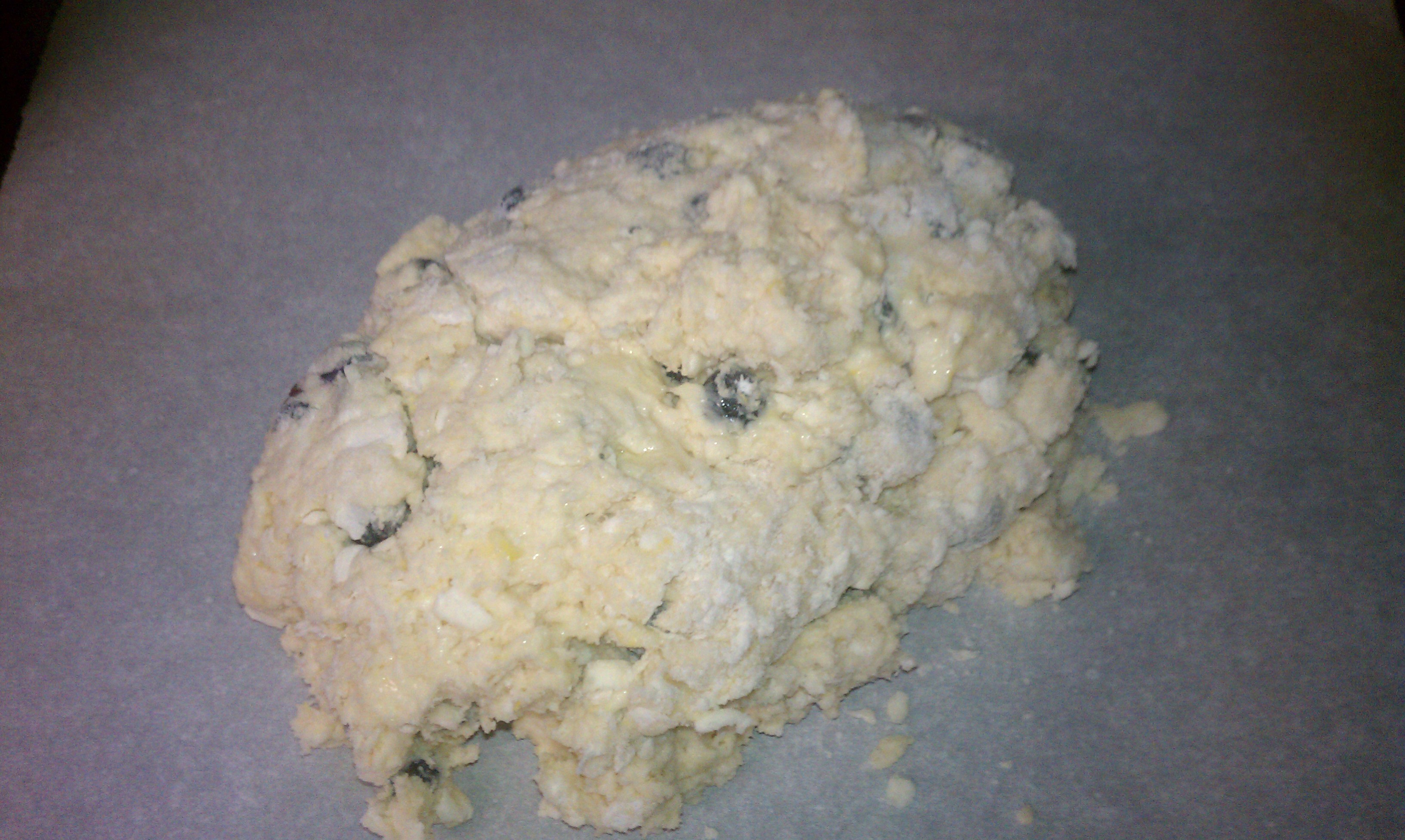 Stir only until the majority of the four is incorporated into one large lump. It’s OK of all the flour is not completely combined. This is a key point is you do not want to over work the dough because your scone will be tough if you do.