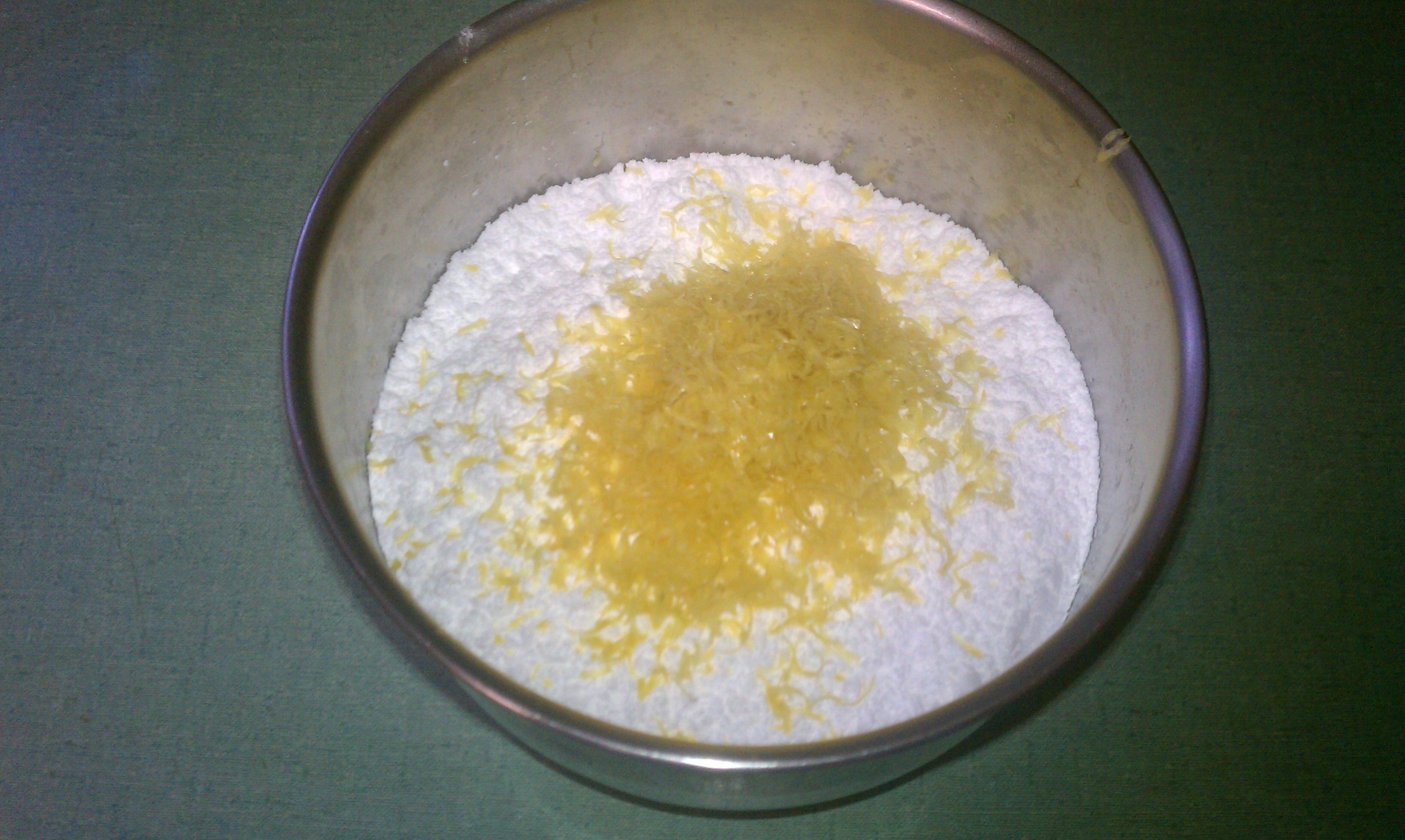 While scones are baking, sift powder sugar into a bowl, using a mesh strainer, add zest of the 2 lemons.