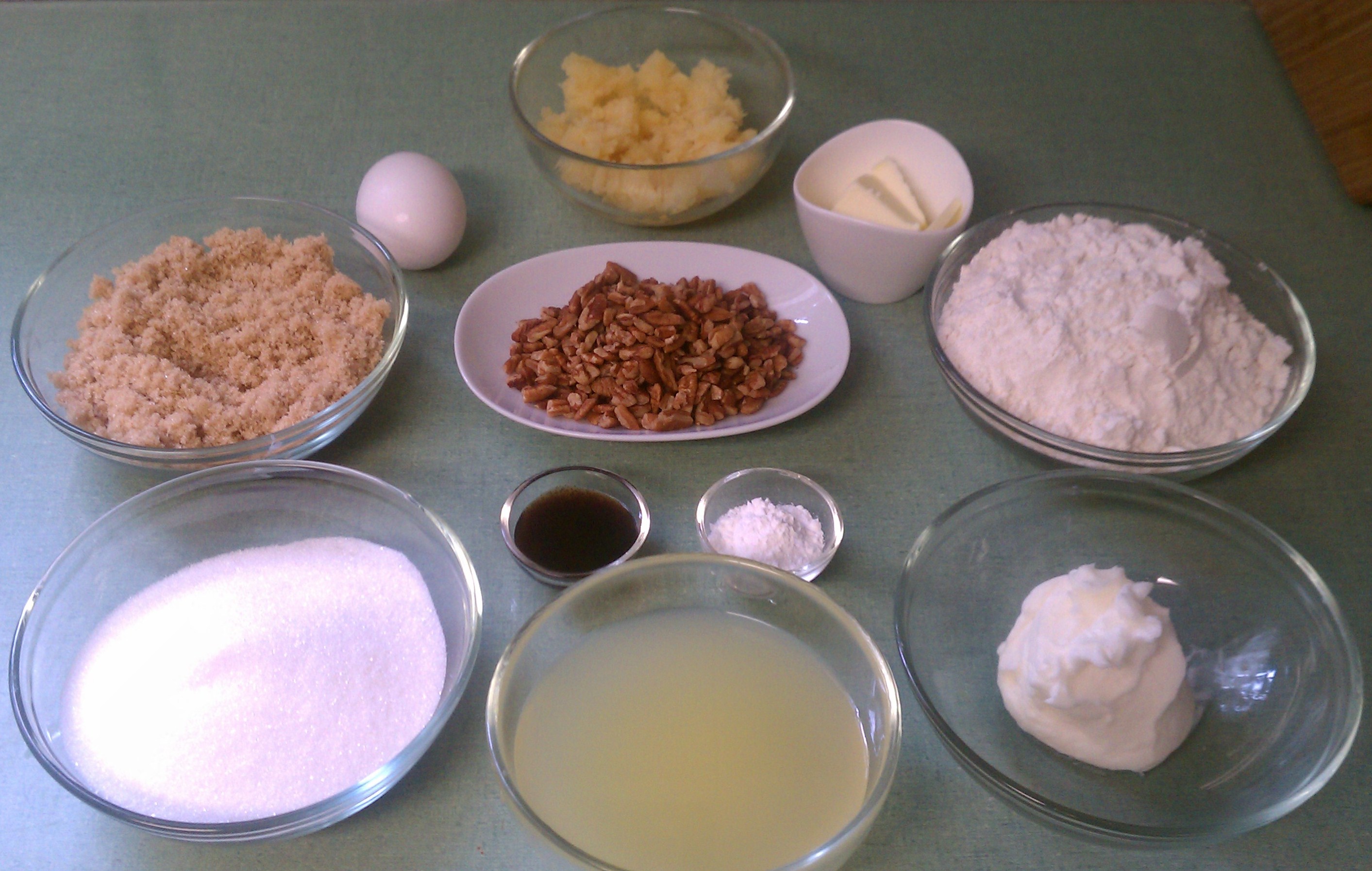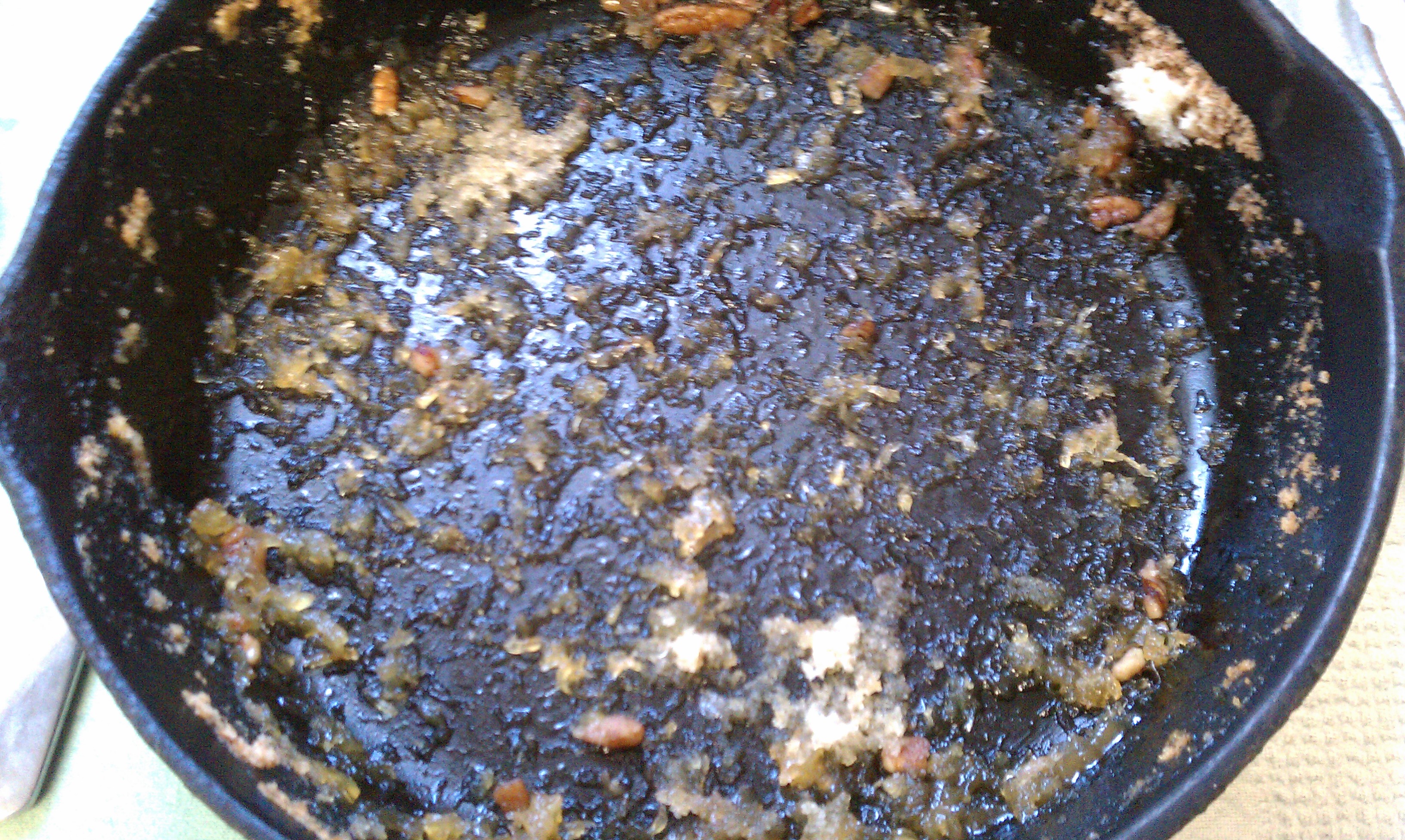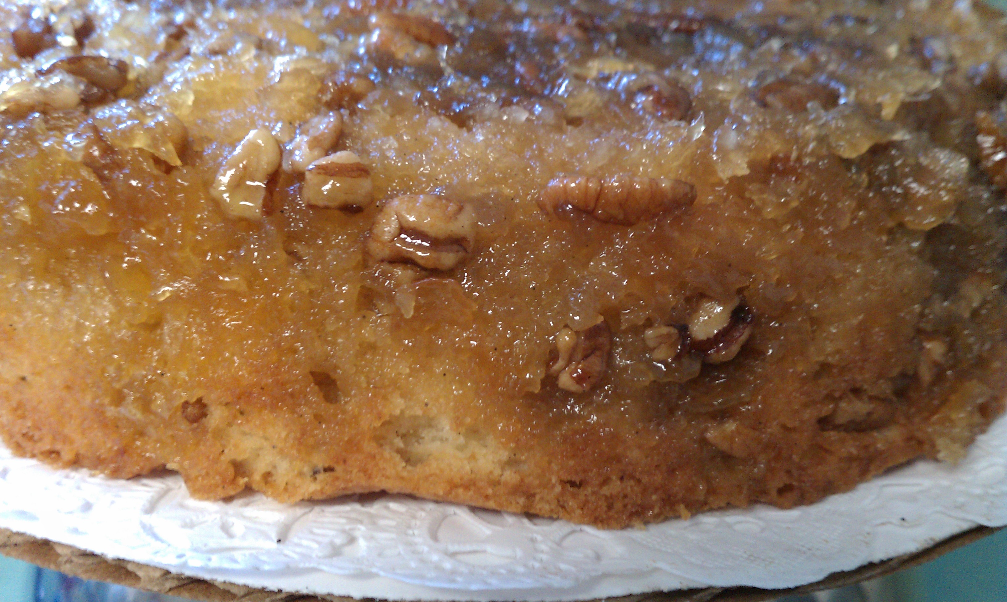 I like a pineapple upside down cake that is moist on the inside but the outer sides of the cake that is slightly crispy/crunchy which sounds odd but it works. Having that bit of tooth feel to the edges from the slight caramelizing of the sugars sets off the flavors from the mild inner part of the cake so well. I also am a fan of pecans in my cake. Now you can get all fancy and use rings of pineapple laying them out all nice and pretty in the bottom of the pan, filling each center with a maraschino cherry…I am good with that as well but sometimes you just want to dump it all in there and get it in the oven so you can poke it down your neck. When it gets to that point in the WikiJan household out comes the crushed pineapple. No muss. No fuss. In the oven and on the plate.