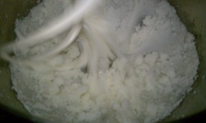 Beat shortening about 30 seconds add sugar and beat till well combined. Add in your egg and give it a go again till light and fluffy, add your vanilla bean paste and combine.