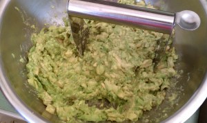 Toss the halves of the avocados into a bowl and mash until you have it as smooth as you would like it.