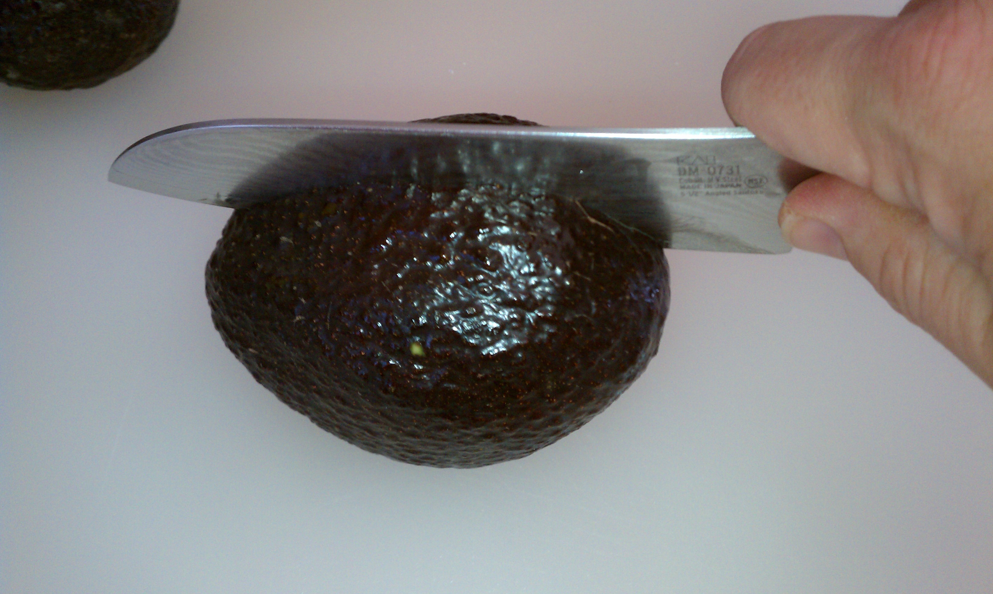 One last thing…DO NOT use your knife to remove the pit from the avocado, EVER! It is VERY easy to aim for the pit and miss lopping off fingers or slicing into your hand, I don’t care if you see TV chefs doing it all the time it is NOT OK! Now on to the directions and photos.