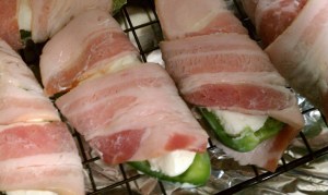 I will admit it is really hard to not eat the whole tray of this as fast as you can. What is there not to like…bacon, cheese and jalapenos! All juicy and crunchy at the same time. I LOVE the contrast in flavors in this little snack. I have a friend who lives in Washington state who LOVES these things and every time we are chatting about them he always calls them dino eggs so I rechristened them as such in honor of him.