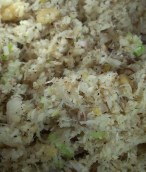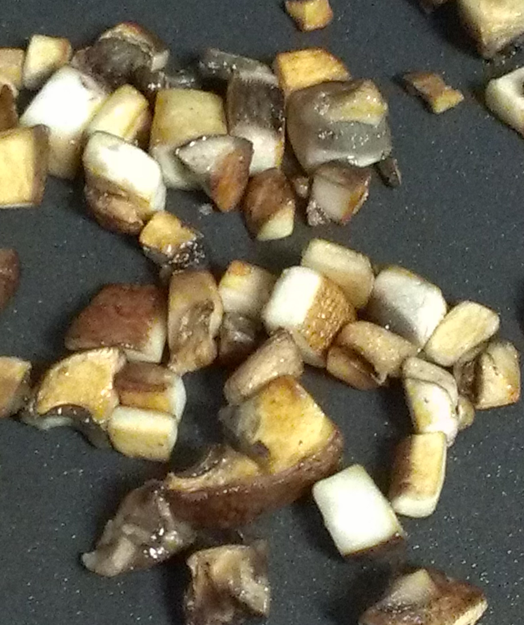 If you are using Mushrooms, finely diced and saute them until they are browned then toss them into the crab mixture as well.